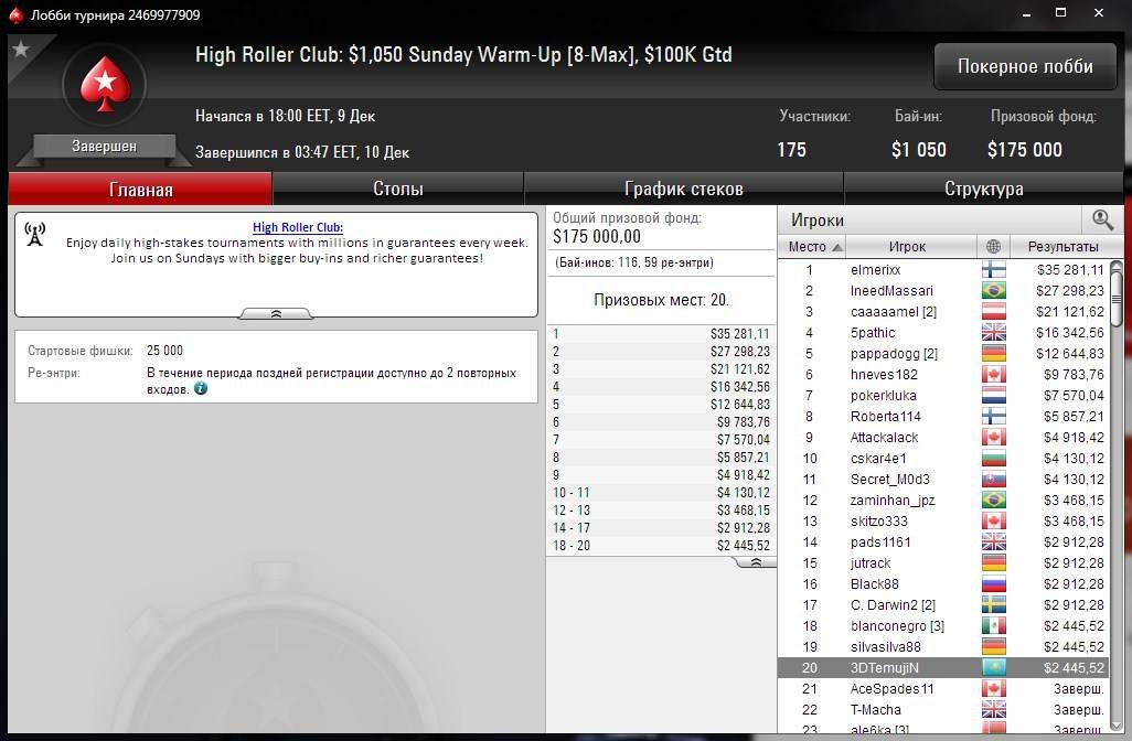 Казахстанец “3DTemujiN” удачно выступил в течение недели в турнирах PokerStars High Roller Club, попав в некоторых за финальные столы.