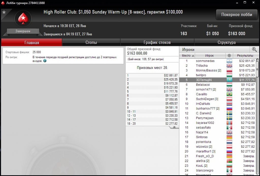 Казахстанец стал триумфатором дорогого турнира на PokerStars, а также занял 5-е место в аналогичном ивенте.