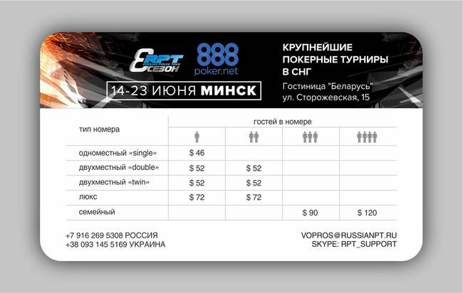888 Russian Poker Tour Минск на форуме:
