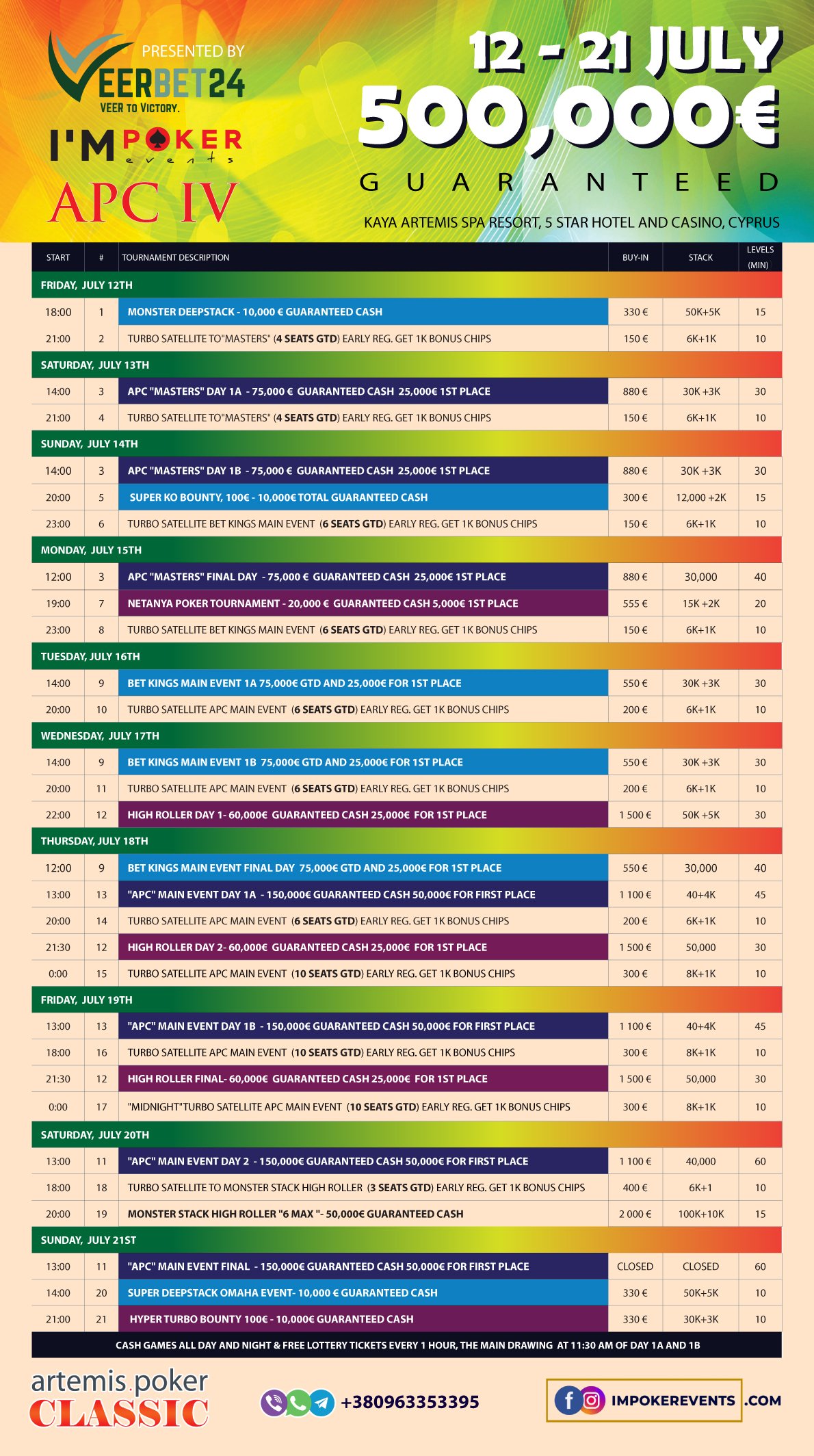 На Кипре началась крупнейшая летняя покерная серия Artemis Poker Classic IV с общей гарантией €500,000. Удивительно, но мы с вами на Кипре. Друзья, всем прив…