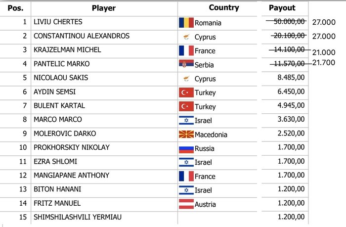 За финальный стол вышли представители семи стран – по два из Турции и Кипра, по одному – Румынии, Франции, Сербии, Израиля и Македонии.