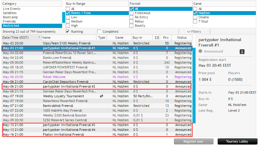 С 3 по 16 мая на PartyPoker состоятся специальные фрироллы на грандиозную покерную онлайн серию Powerfest.