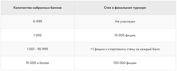 Каждый последующий балл будет увеличивать стартовый стек участника и, соответственно, его шансы на победу в финальном турнире!