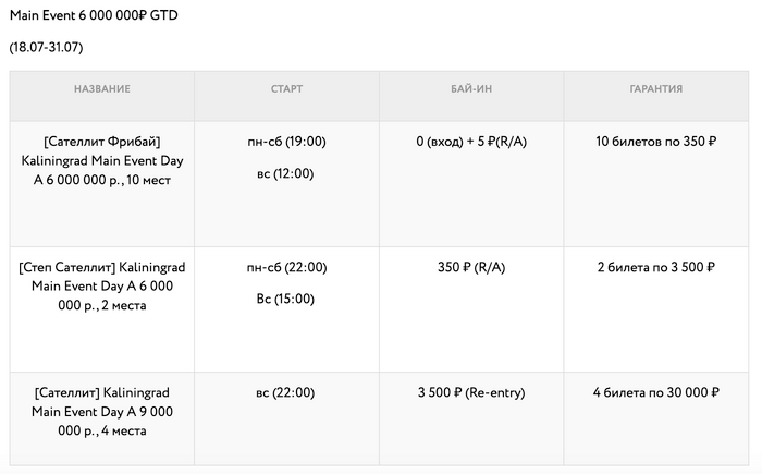 4. Если вы выиграете больше одного билета на целевой турнир, то следующий сможете использовать для ре-ентри (если поздняя регистрация не закрыта).