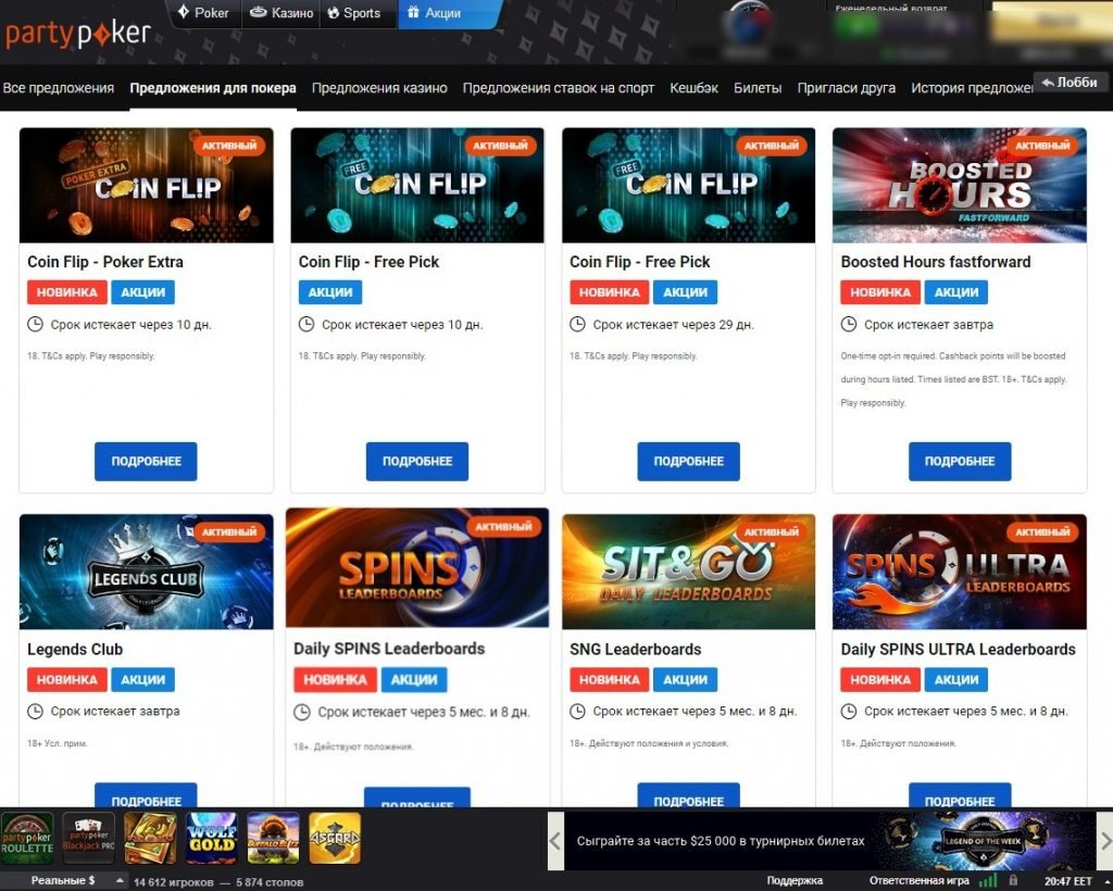 - Бесплатные ставки на спорт — можно использовать для размещения ставок на спортивные события на портале partypoker Sports
