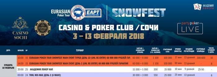 В 8-ой день EAPT Snowfest нас ожидает: