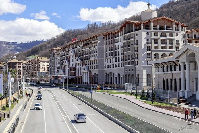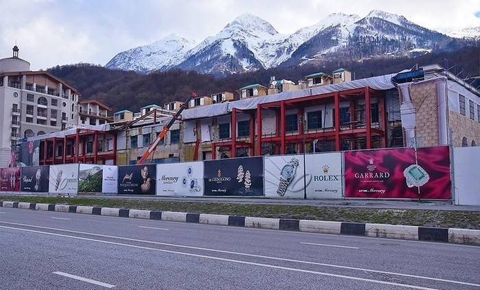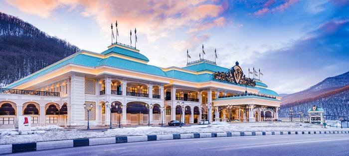 «Казино Сочи» открылось в январе 2017 года и стало первым казино в России мирового масштаба. Казино было построено на месте Медиа-центра Олимпийских игр в Сочи. 2014 год (первое здание справа):