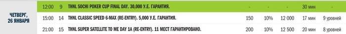 Вчера 42 покериста смогли преодолеть игровой день Sochi Poker Cup и пройти в финальный. Призовые начинались с 27 места, поэтому проход ещё не гарантировал минимальную выплату.