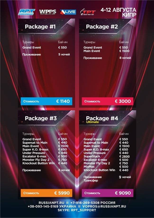 Пакеты с бай-ином, проживанием и полным пансионом еще в наличии – всего €1,140!