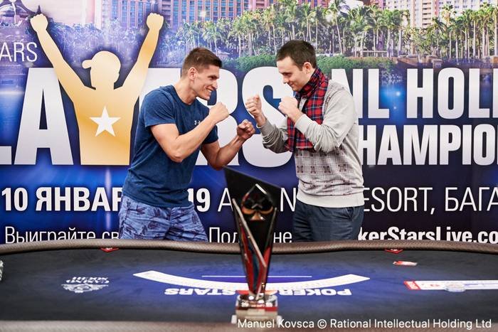 В хедз-ап вышли Вячеслав Бондарцев и Евгений Леонидов. В начале покерной дуэли россиянин лидировал по количеству фишек, но казахстанцу удалось не только выровнять стеки, но и обойти оппонента — 10М против 9М.
