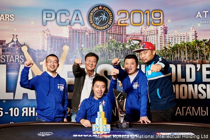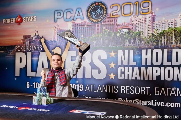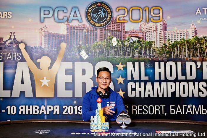 Он получает прекрасный кубок, призовые в размере 201,055 у.е. и пакет на покерный фестиваль PCA на Багамы!