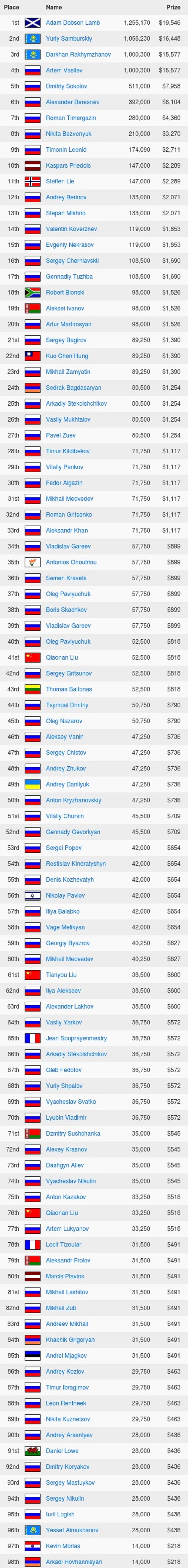 96 Alexey Avramenko Russia 5 200