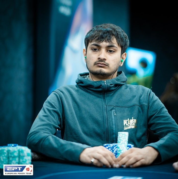 Картик Вед залимпил с малого блайнда, а Даниил Лукин поставил его под олл-ин 2,4М – колл.