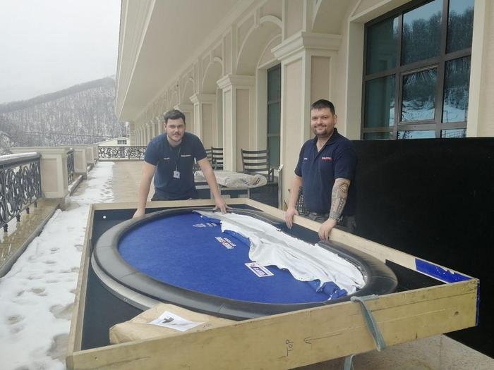 На каждую живую серию PokerStars приезжает специальное оборудование из Великобритании, общий вес которого составляет более 3 тонн! Особые подъемники поднимают весь багаж на второй этаж “Казино Сочи”, где порядка 30 человек монтируют оборудование и собирают сцену.