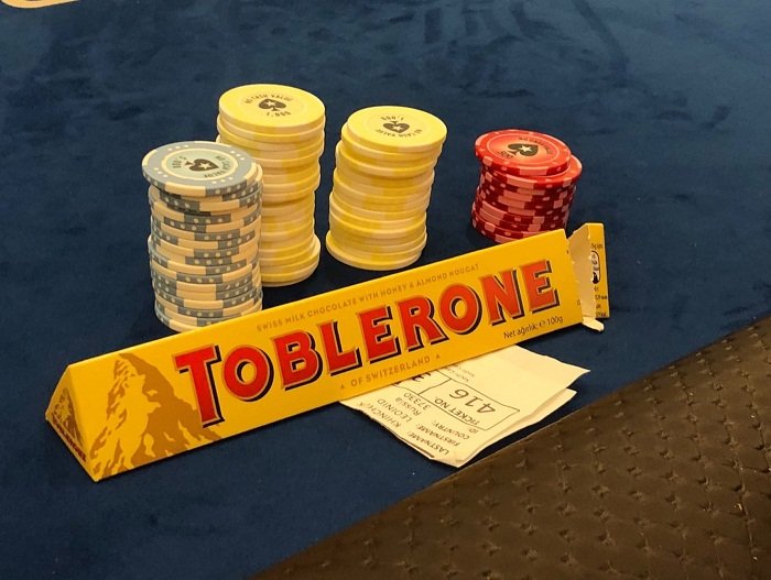 В большом банке перекупили. На терне было 2 пары. Поставил большую, там кол. На ривере положили четвертую флеш карту. И ко мне прилетела ставка. Пришлось выкинуть. Потом ничего не заходило. Сейчас в пуш-фолде. Может повезёт.»