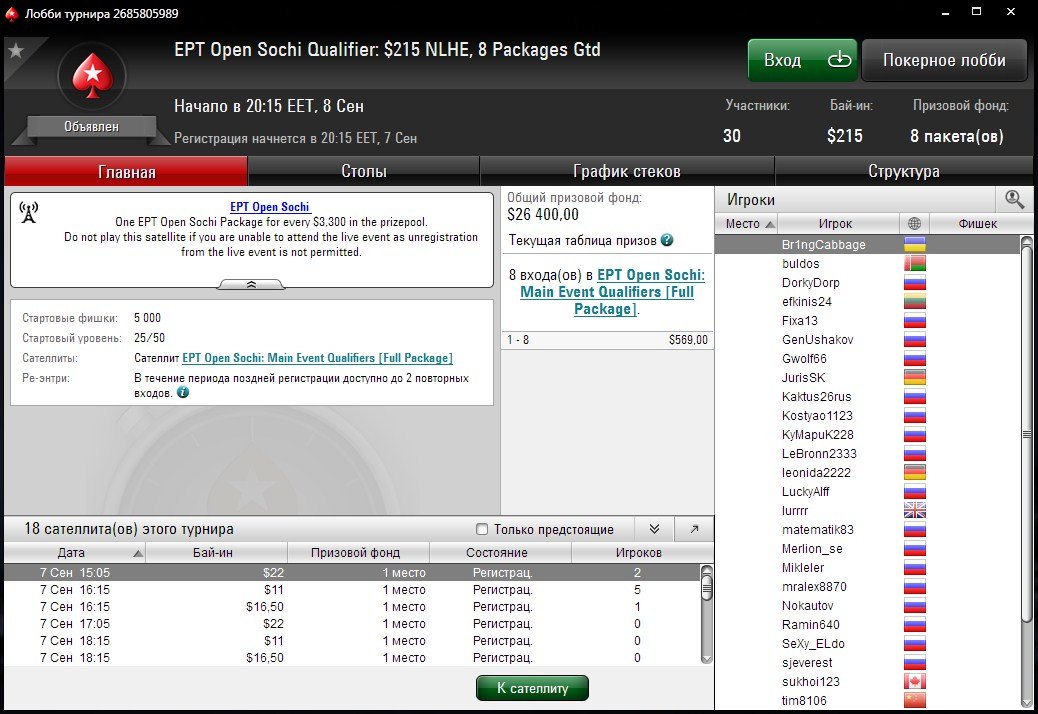 Отборочные турниры к Главному событию проводятся ежедневно, бай-ины начинаются от $0,27.
