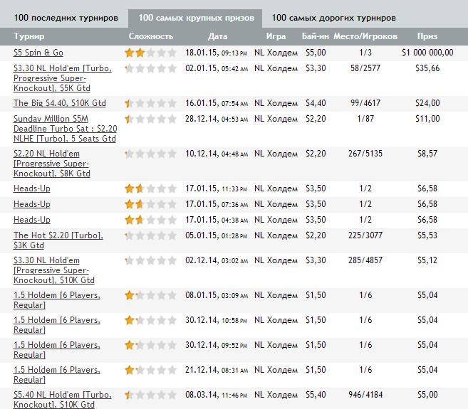 Чешскому игроку “Tornádo111” в счастливом Spin & Go пришлось преодолеть игроков из России и Германии — “RusGreen” и “newann” соответственно. Как и первый российский победитель, “Tornádo111” в онлайн не имел крупных достижений. Самые крупные выигрыши были показаны в хедз-апах за $7, где он выигрывал $13,70.