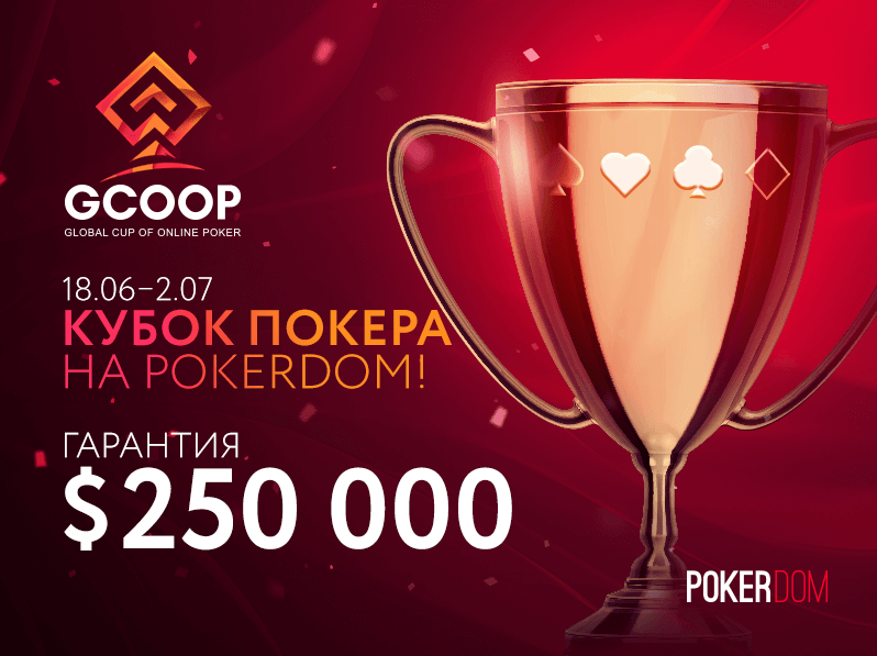 С 18 июня по 2 июля на PokerDom пройдет традиционная серия GCOOP с общей гарантией в $250,000. В летней серии Global Cup of Online Poker будет представлено 60 турниров по Холдему, Омахе и Китайскому Покеру с разной структурой и бай-инами от $5.