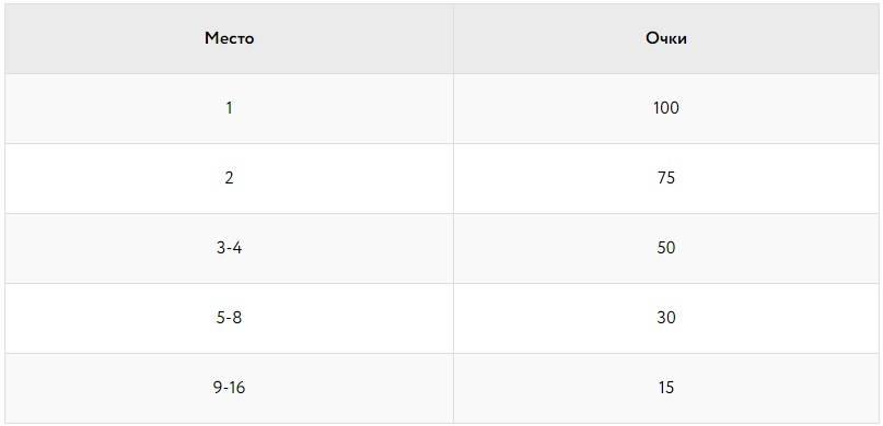 Обратите внимание: в зависимости от типа турнира очки таблицы лидеров получают лучшие 16 (в некоторых типах турниров — 18) призеров. Для получения очков в таблице лидеров занятое место должно быть призовым. Оставшиеся призеры, а также игроки, вылетевшие до призовой зоны, не получают баллов GCOOP Leaderboard.