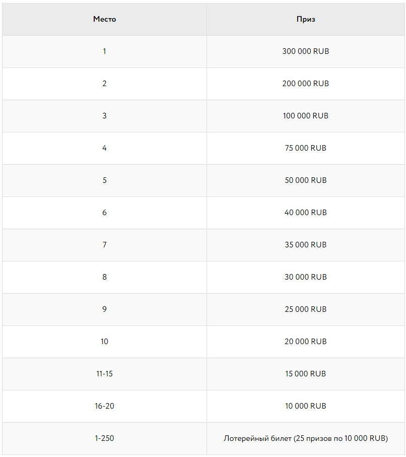 - 25 000 000 рублей суммарного призового фонда.