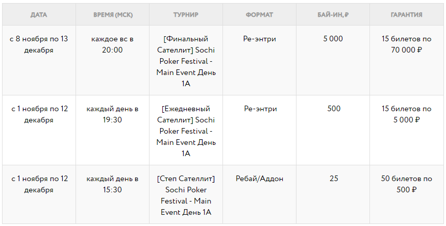 А первый сателлит с гарантией 15 билетов по 5 000 рублей на Главное Событие стартует уже 1 ноября.
