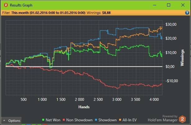 Ребячество. Вся прелесть покера и заключается в максимально прагматичном подходе и математически верных решениях. Адекватная цель — только одна из составляющих успеха. Удачи !!! Отметка в 200 — 300 американских тенге — по завершению марафона, по моему скромному мнению ОЧЕНЬ достойный результат. Буду следить. |
