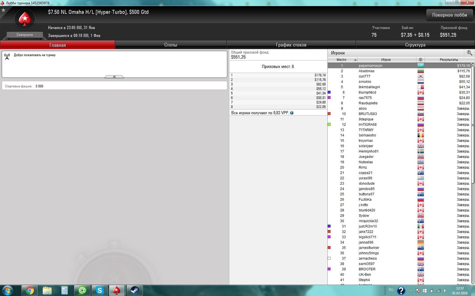 Всем привет А сделаю ка я отчет за месяц Заняться особо нечем было работе, и вот решил сделать отчет за январь. Думаю пост будет не только о покере. Пишу его больше для себя, чтобы взглянуть на то, что произошло со стороны. Собственно этот месяц начался для меня клево. В первый день плюсанул около 2,5к$. После этого ястал много катать. Ну и конечно уделял время к семье. В январе наконецто купил для себя новый компьютер с 27″ мониторами качественной цветопередачей. Но хрен с ним, хорошо хоть такой есть думаю лет 10-15 хватит. Скрин Всего катал я 24+ стола. Как оказалось это очень удобно. |