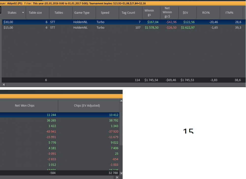 Теперь две недели отдыха и будем катать Постараемся покорить ПС. Посмотрел РОЙ нескольких регов, они в районе 1-3%, что говорить о том что игра слабо бьется Начнем 15-ки с 5-и столов Постепенно будем менять по столу на 30. И постараемся добавить 6-ой стол Буду делать отчеты и выкладывать результаты Ну, что, друзья Go with me!!! Пока вот так Сильный недобор по олл-ин ЕВ на 15
