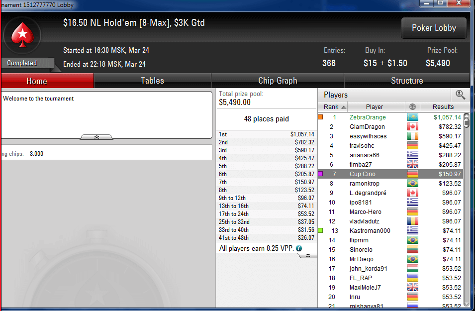 | Всем привет. Зовут меня Кайхан. в Этом году стукнет 40!!!!!!!!!!!!!! Мля я Динозавр!!!!!!!! В онлайн покере с 2014 г. 2 года к игре подходил как к хобби. С октября 2015 вышел на пенсию ))) и покер стал основным моим занятием. Купил Покер Трекер и понеслось. Декабрь 2105 и январь 2016 был просто Апповым +20К!!!!! Ну как вы наверное уже поняли я почувствовал себя хозяином Поля и пошел по лимитам выше 109,250 , и даже поучаствовал в одной Офлайн серии . ну к чему это привело наверное тоже догадаться не трудно . Окончательно на землю меня спустили меня в Кеше NL25 ))). Сегодня закинул на ПС 400$ , буду играть регулярки и прогрессив кнокауты 5,5-16,5 . Буду выкладывать результаты и ключевые раздачи тут . Буду очень благодарен коментам к раздачам от Местных Про и Любителей. |