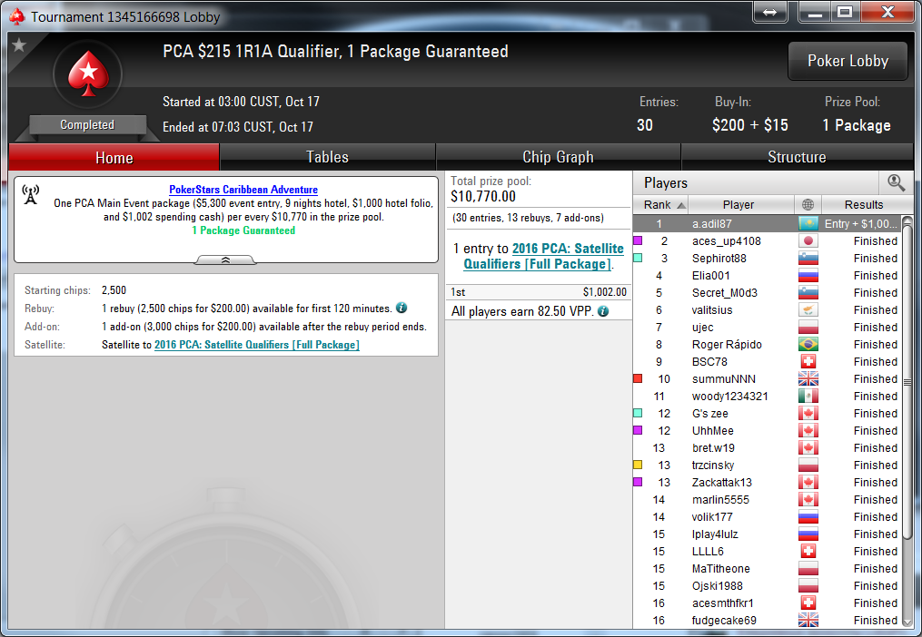 Адиль “aadil” приехав с отпуска, в котором он побывал в Европе, выиграл пакет на Главное событие PokerStars Caribbean Adventure 2016: