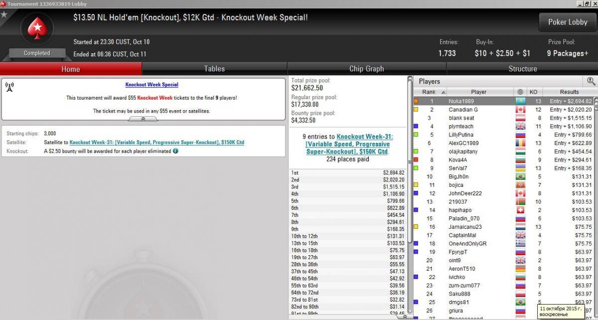И в очередной раз показал достойный результат, выиграв турнир с нокаутами за $13,50: