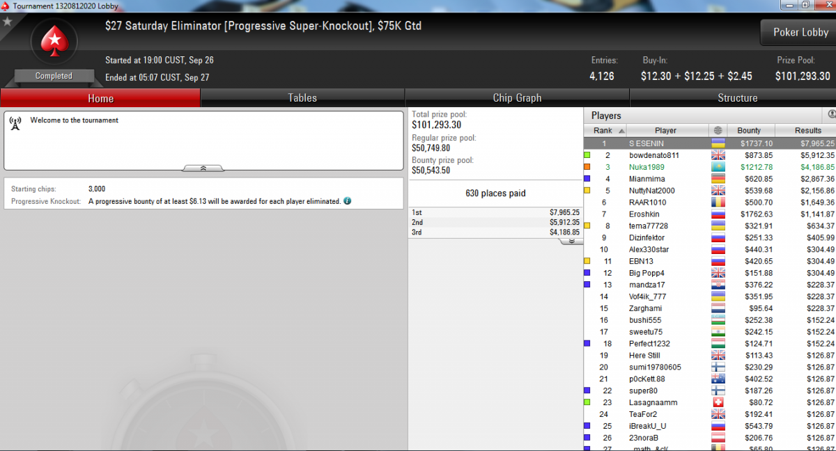 Ну и раз речь зашла об успехах наших покеристов, то прочитайте рассказ Валеры «vk_pokerstars» о турнире в Покерном клубе “Бомбей”: