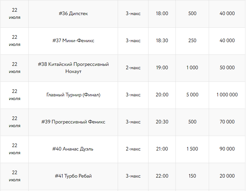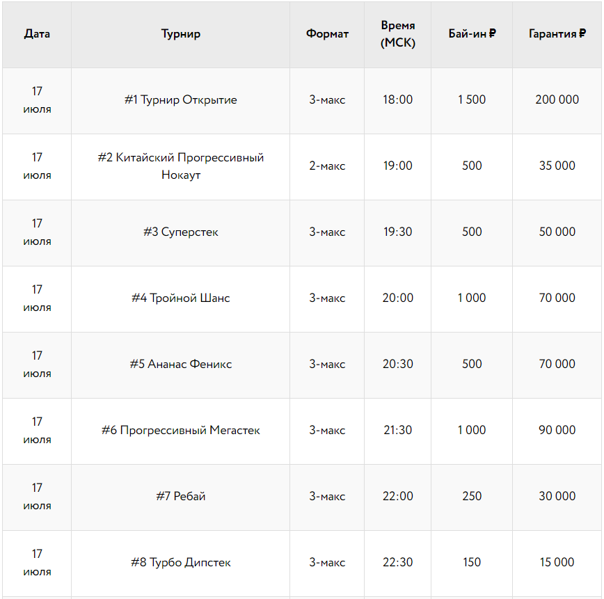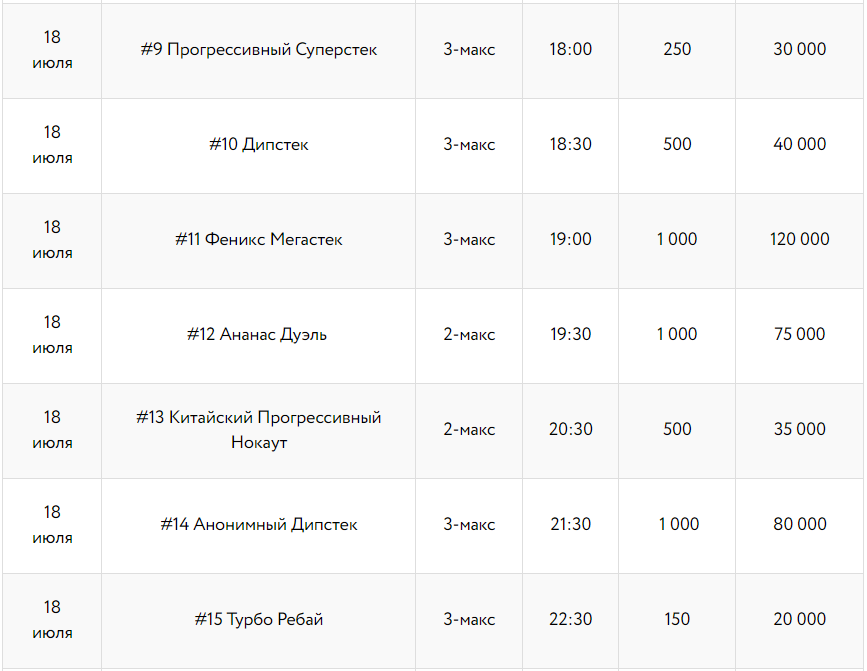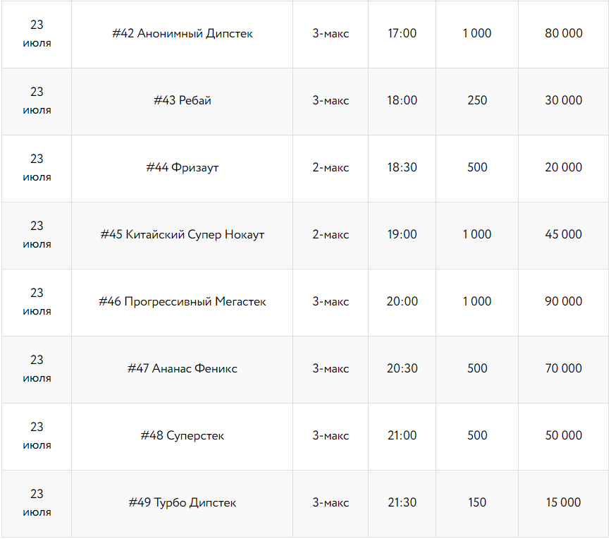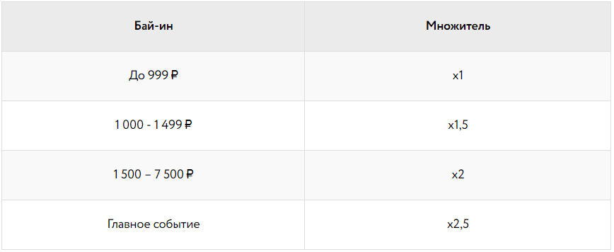В турнирах с бай-инами от 500 ₽ будет начислен дополнительный рейкбек в размере 25%, в Хайроллере и Главном событии — 100%.