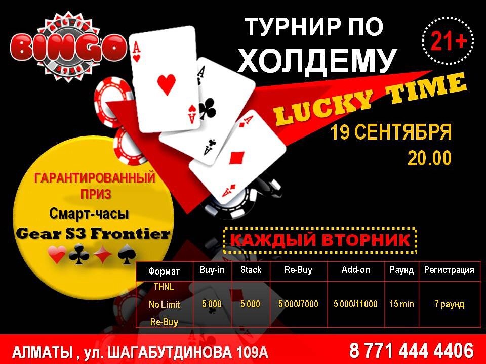 Турниры Lucky Time с главным призом Смарт-часы будут проходить в клубе каждый вторник!