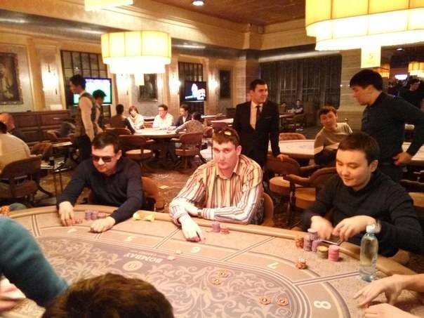 | Так как я вылетел, перехожу в комментаторы. Сейчас за столами 27 игроков, блайнды 800/1600/300, средний стек 73к. В игре Lekerov, Libero, Ламент, Марат marchello, Мура-Арсенал, Женис К23пиксель, Чина. Так же на турнир приехал Борис Табиев. |