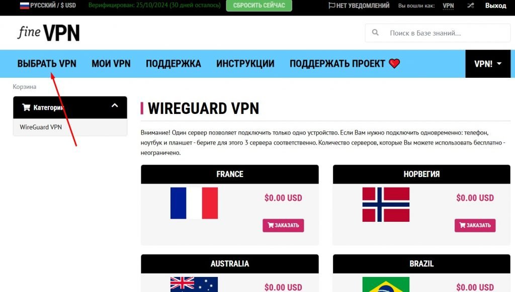Учтите, что сервер ВПН арендуется на 30 дней, после чего необходимо вновь пройти верификацию электронной почты.