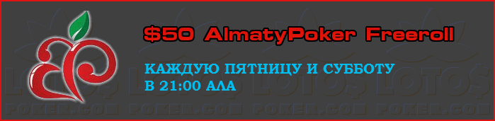 Вы также можете воспользоваться нашим эксклюзивным предложением на LotosPoker и получить совершенно бесплатно $50 на игру. Предложение дествуют тоько для новых игроков из Казахстана. Для получения денег игроку необходимо просто зарегистрироваться на LotosPoker по инструкции.