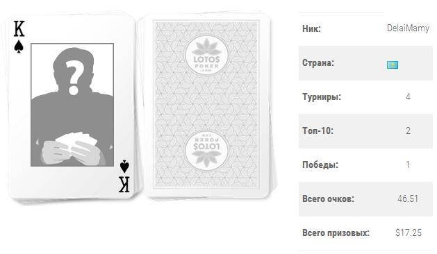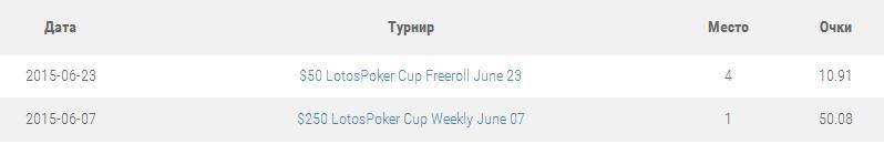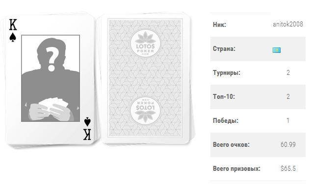 Кроме того, «anitok2008» выиграл наибольшую сумму призовых ($65,5) из всех участников LotosPoker Cup.
