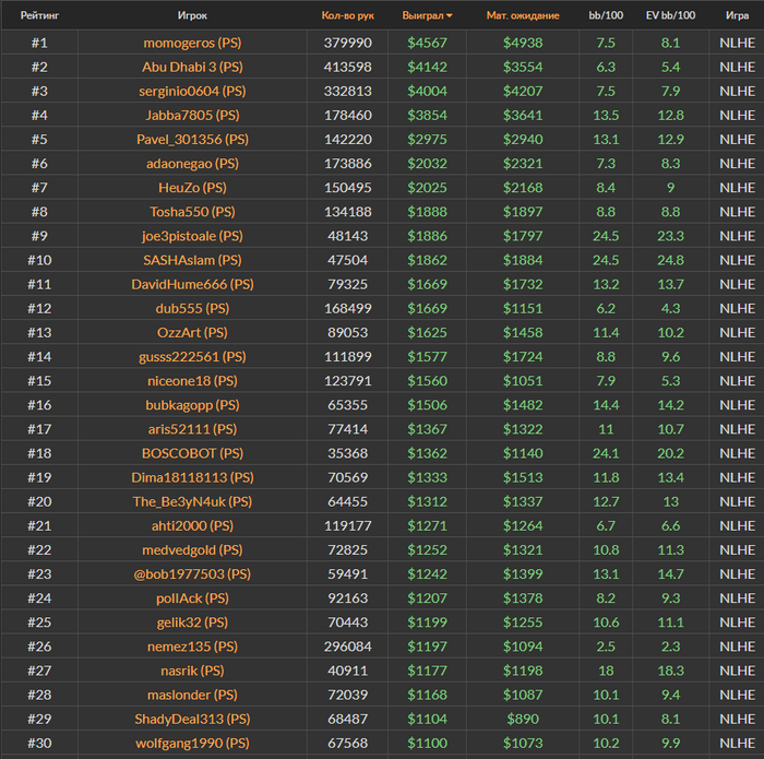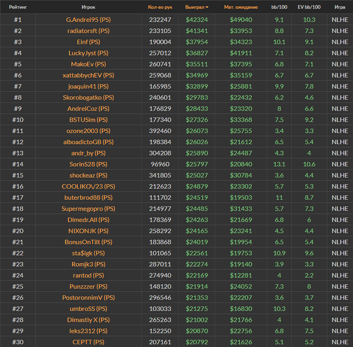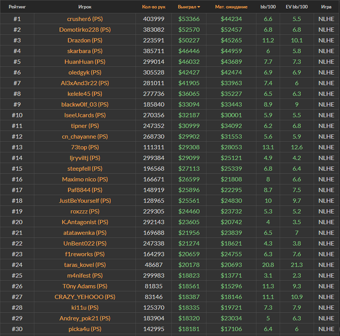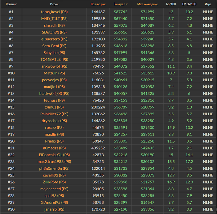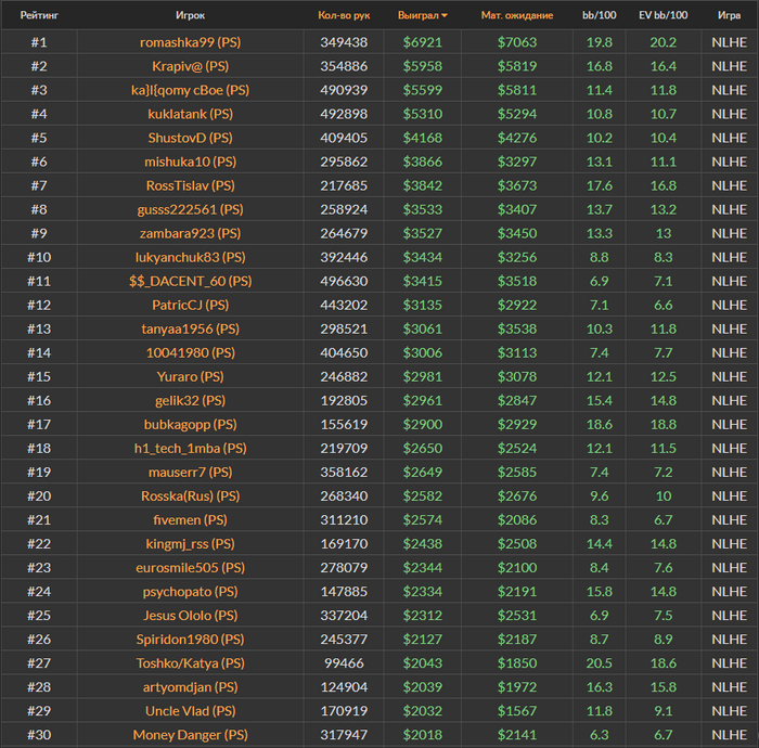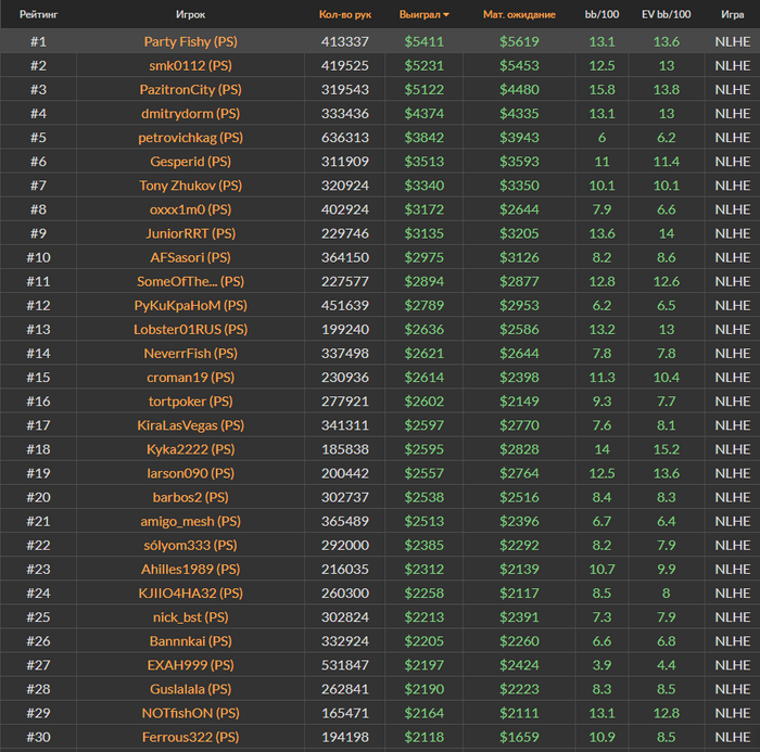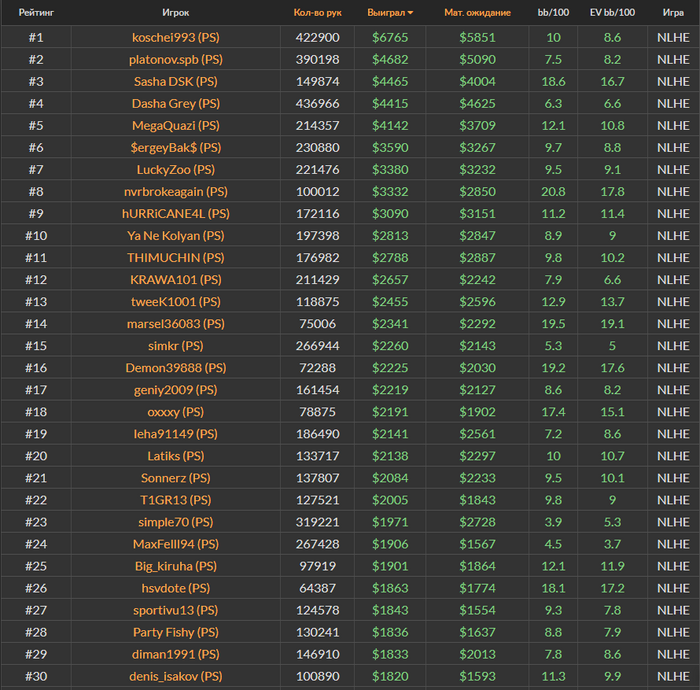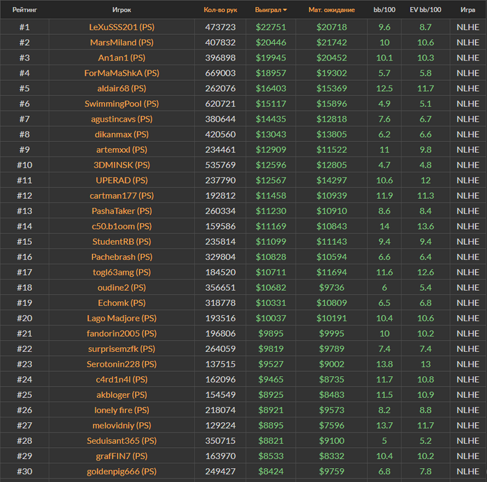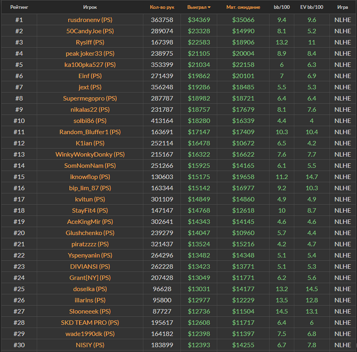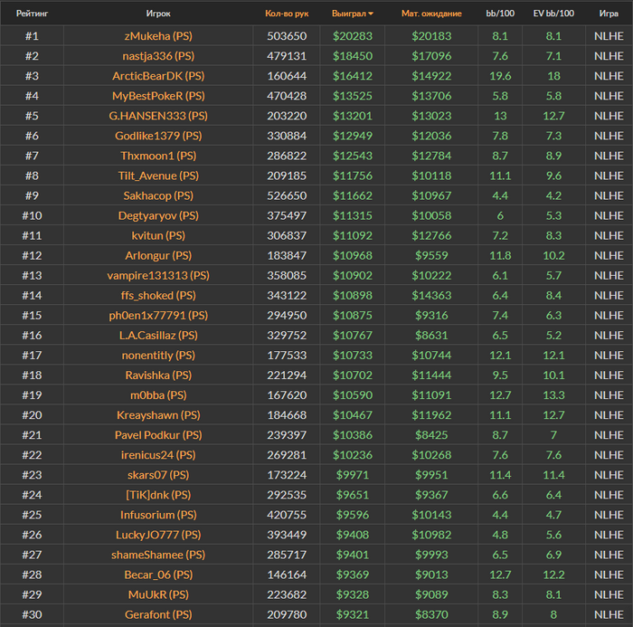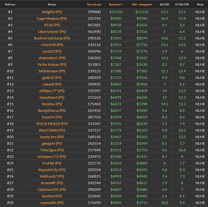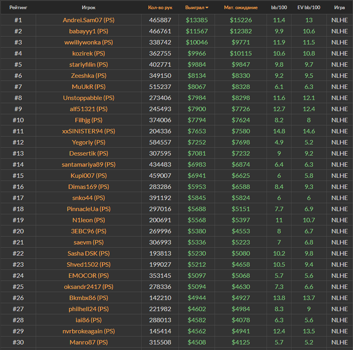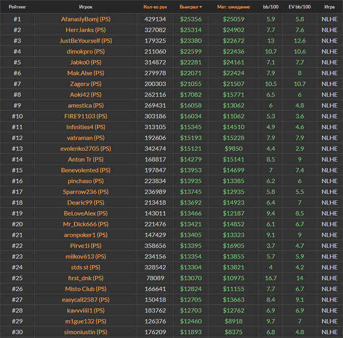 Рейтинг самых успешных кэшевиков в Безлимитном холдеме на PokerStars за весь 2021 год.