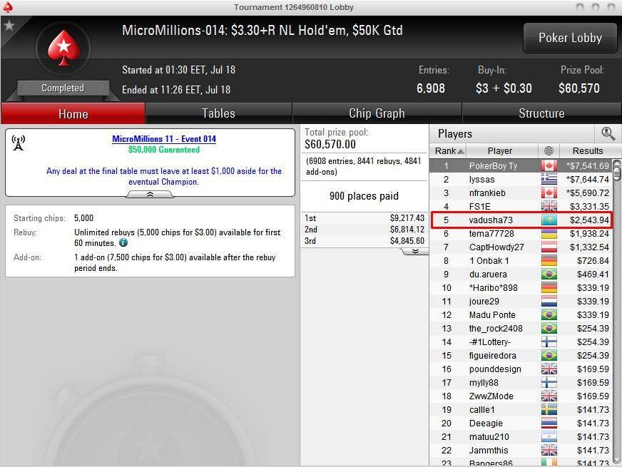 Покерная серия MicroMillions на PokerStars, которая стартовала 16 июля, уже прошла свой экватор. Сыграно чуть больше 50 турниров, и мы можем подвести промежуточные итоги казахстанцев, а также поделиться сообщениями наших форумчан. Кроме того, мы предлагаем поучаствовать в соревновании на самый глубокий проход в Главном турнире серии, а Роман со своей стороны предлагает бекинг.