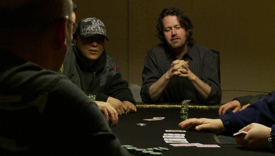 На стене огромный экран. Постоянно крутят футбол или бейсбол, но это мало кого вообще волнует. Все сосредоточено вокруг двух покерных столов, которые заполнены игроками. Женщин нет. По залу разносится характерный стук фишек и приглушенные разговоры.