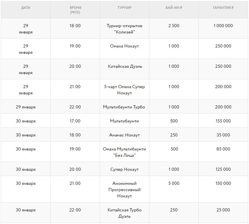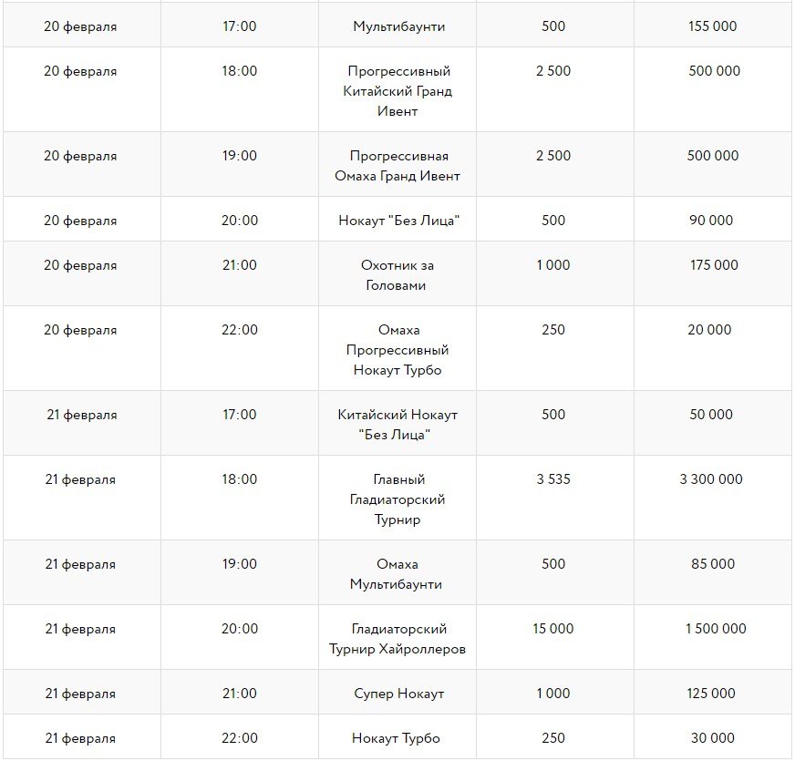 - Кубки получат победители турниров Турнир-открытие «Колизей», Прогрессивный Китайский Гранд Ивент, Прогрессивная Омаха Гранд Ивент, Главный Гладиаторский Турнир, Гладиаторский Турнир Хайроллеров и победители общего, нокаут лидербордов с доставкой до дверей игрока.