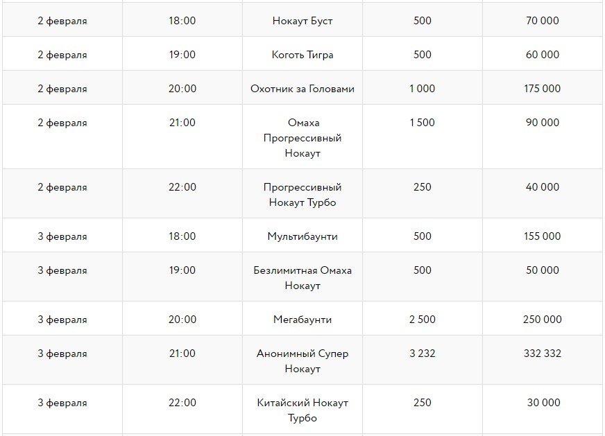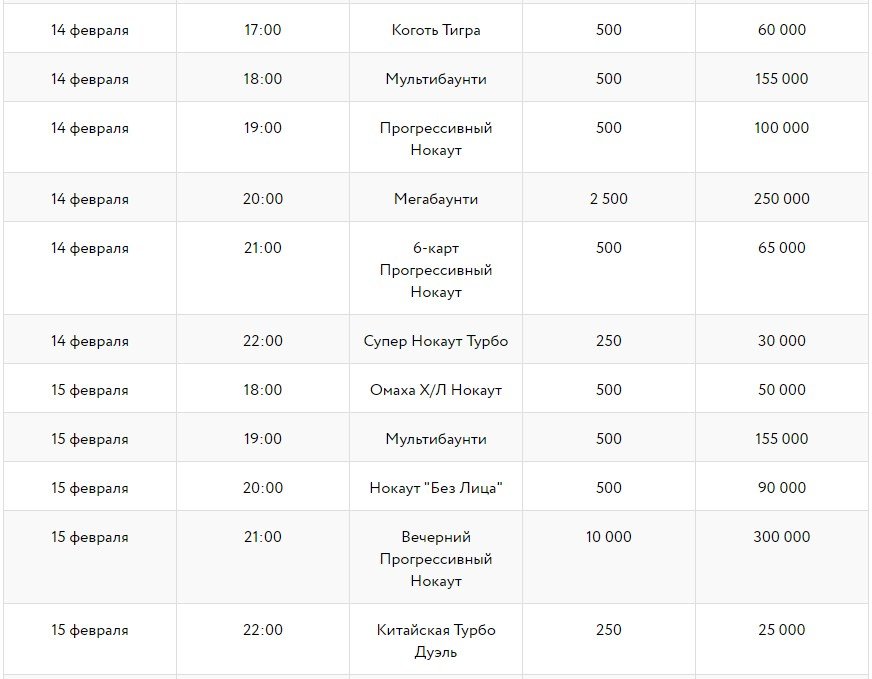 Расписание турниров