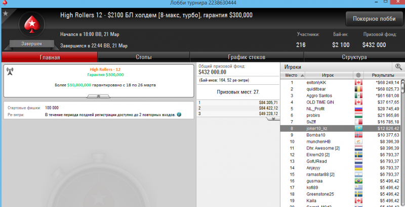 А вот другой наш форумчанин Жакен «Joker10», показавший недавно отличные турнирные результаты, попробовал свои силы с самых дорогих спин-энд-гоу.