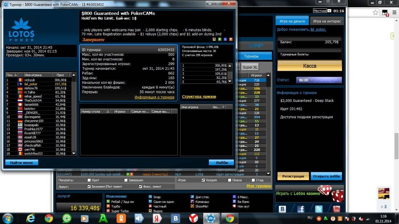 На LotosPoker в турнире Mega Deep за $215, в котором зарегистрировалось 678 игроков, гарантия составила $135,600 (за 1-ое место $31,866). Игрок из Казахстана под ником «15Oxlade» занял 88 место в турнире и получил $271.20.