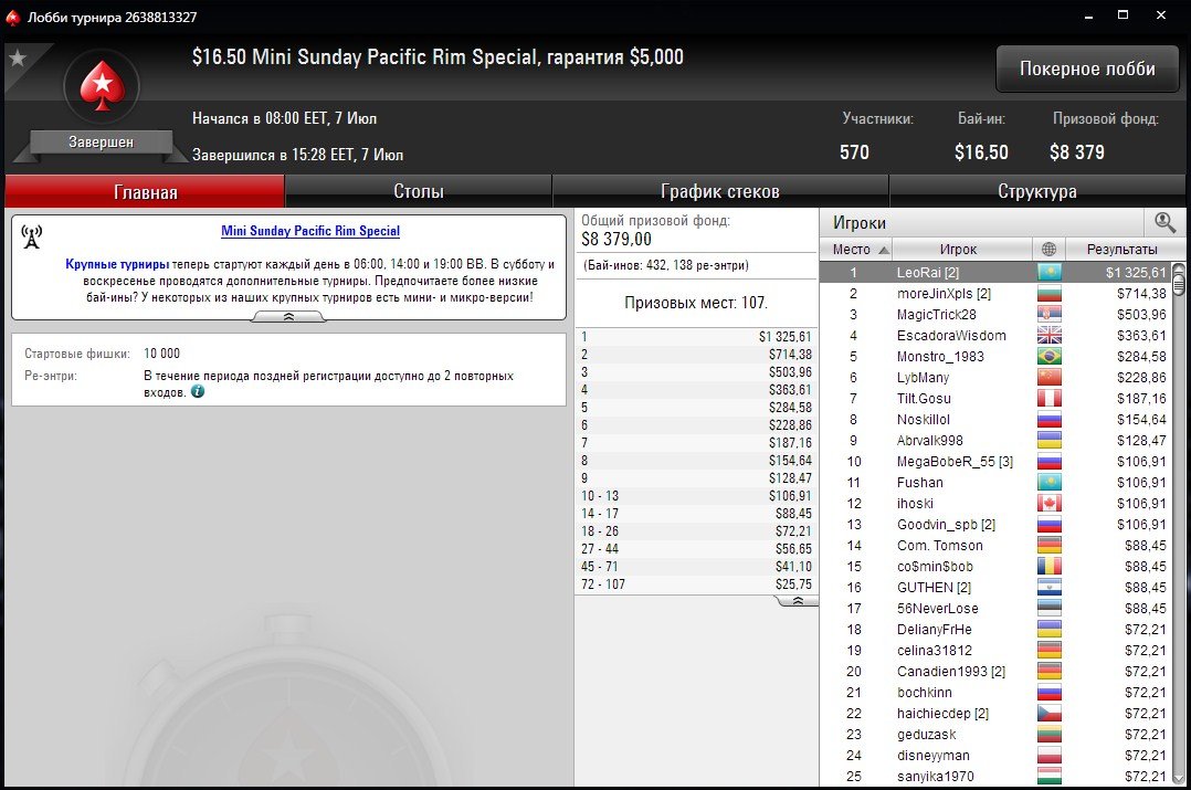 Победа “LeoRai” и другие достижения наших игроков в онлайн-турнирах. Казахстанец “LeoRai” стал победителем Mini Sunday Pacific Rim Special с бай-ином $16,50….