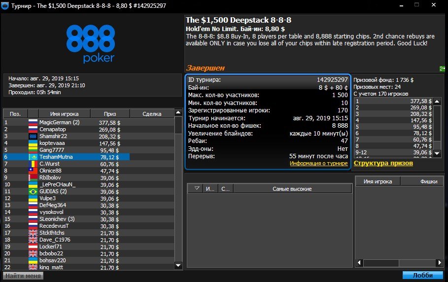 Хорошими результатами на 888poker отметились и ещё несколько наших соотечественников.