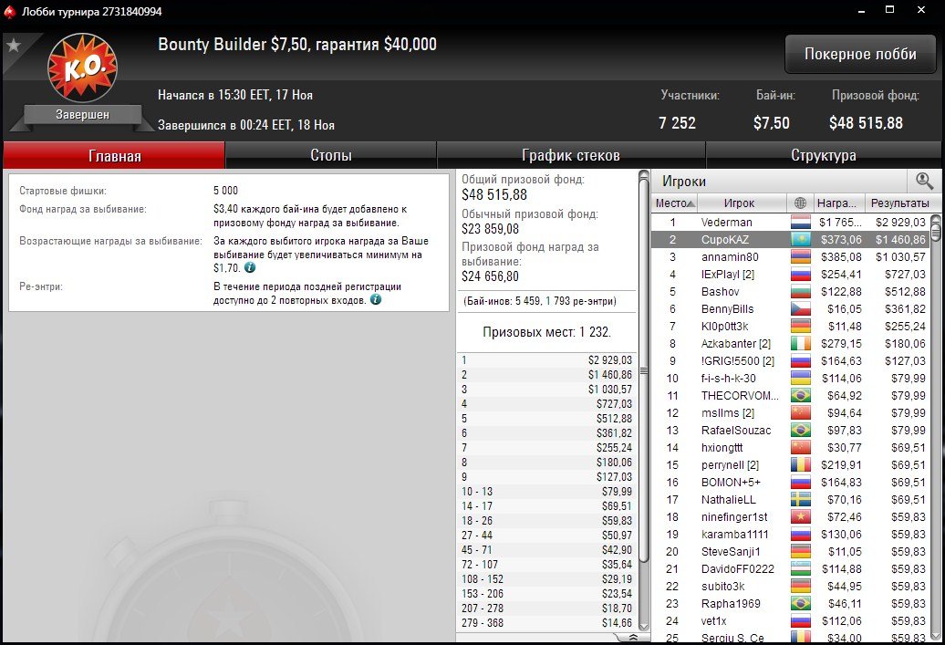 В завершении отметим финалку “CupoKAZ” в Bounty Builder $7,50.
