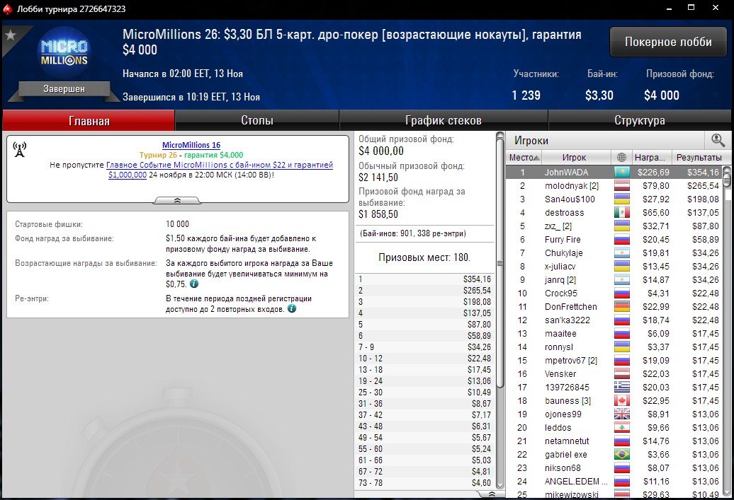 “JohnWADA” выиграл турнир MicroMillions и другие результаты наших игроков в микро ивентах.