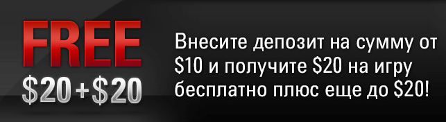 Данное предложение продлили до 1 мая. Внесите свой первый депозит на счет PokerStars на сумму от $10 и получите $20 на игру бесплатно ПЛЮС еще до $20! Вы также получите 31-дневный билет на фрироллы $100K Privilege Freerolls, в которых сможете сразиться за часть суммарного призового фонда более $100,000! Подробно